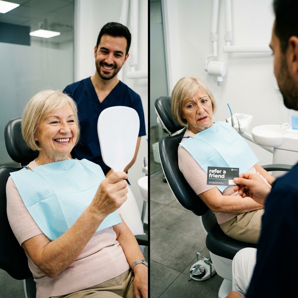 You've done beautiful implant work. Your patient is delighted. They're chewing confidently, smiling freely, telling you how life-changing it was. Then you ask them to refer friends—and suddenly it gets awkward.